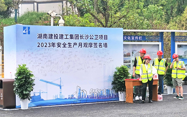 近日,長沙2023“安全生產(chǎn)月”建筑工程安全生產(chǎn)和質(zhì)量管理標準化示范觀摩會在湖南建投集團承建的長沙市公共衛(wèi)生救治中心項目舉行,活動還未正式開始,門口的簽到墻就已經(jīng)人潮涌動,筑邦鴻昇眾多安全標化產(chǎn)品傾情助力。