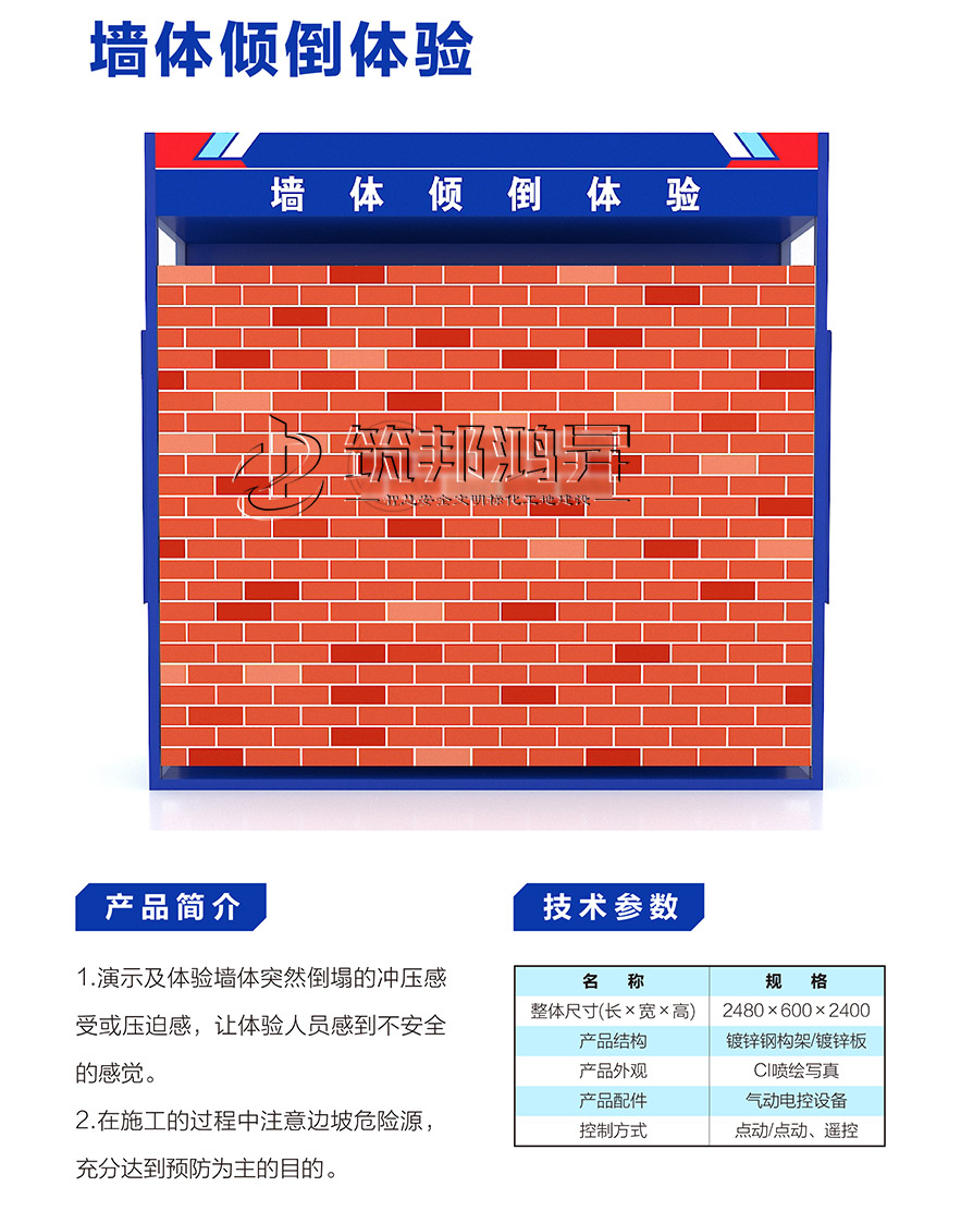 【筑邦鴻昇】實(shí)體安全體驗(yàn)館采用視、聽、體驗(yàn)相結(jié)合的立體式安全教育模式,實(shí)施可感受、可操作的實(shí)體化安全教育。安全體驗(yàn)館通過(guò)模擬建筑施工現(xiàn)場(chǎng)可能發(fā)生的各種安全事故,讓體驗(yàn)者親身參與、體驗(yàn),寓教于樂(lè),體驗(yàn)不安全操作行為帶來(lái)的危害,讓每個(gè)員工都有實(shí)際操作的動(dòng)手能力,真正達(dá)到“以人為本預(yù)防為主”為目的的場(chǎng)館。通過(guò)體驗(yàn),讓體驗(yàn)者熟練掌握安全操作規(guī)程以及緊急情況的安全對(duì)策,達(dá)到提升職業(yè)技能、提高安全意識(shí)的目的。實(shí)體體驗(yàn)館有(常規(guī)款+鈑金款+經(jīng)濟(jì)款),下面展示的是經(jīng)濟(jì)款。